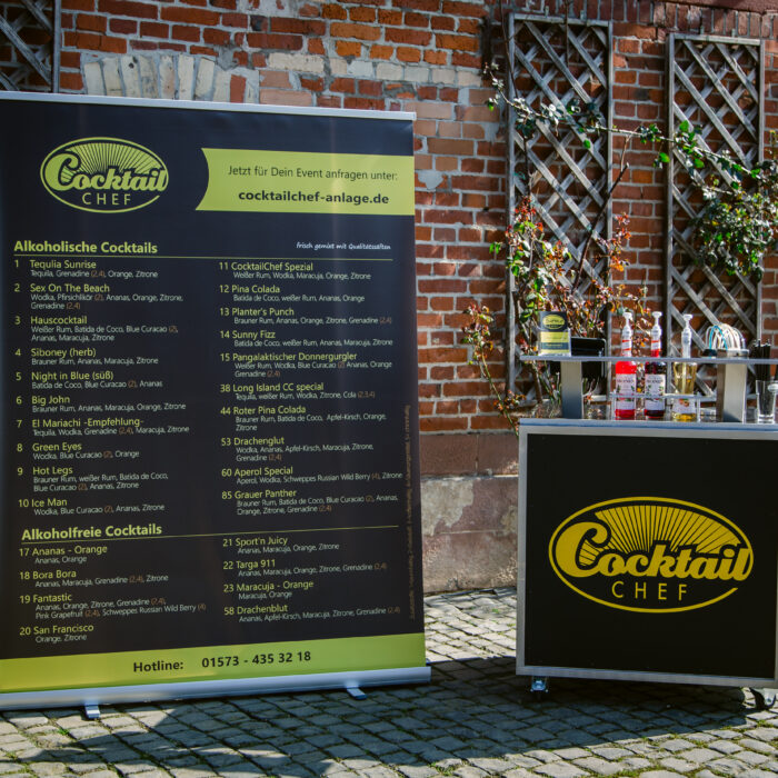 Bei jeder Buchung bieten wir ein Rundum-Sorglos-Paket an: alle Zutaten, die für unsere Cocktails benötigt werden, sowie Gläser/Becher und Trinkhalme liefern wir Dir im Gesamtpaket mit an, sodass Du Dich um nichts kümmern musst.