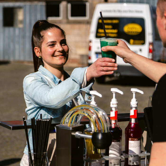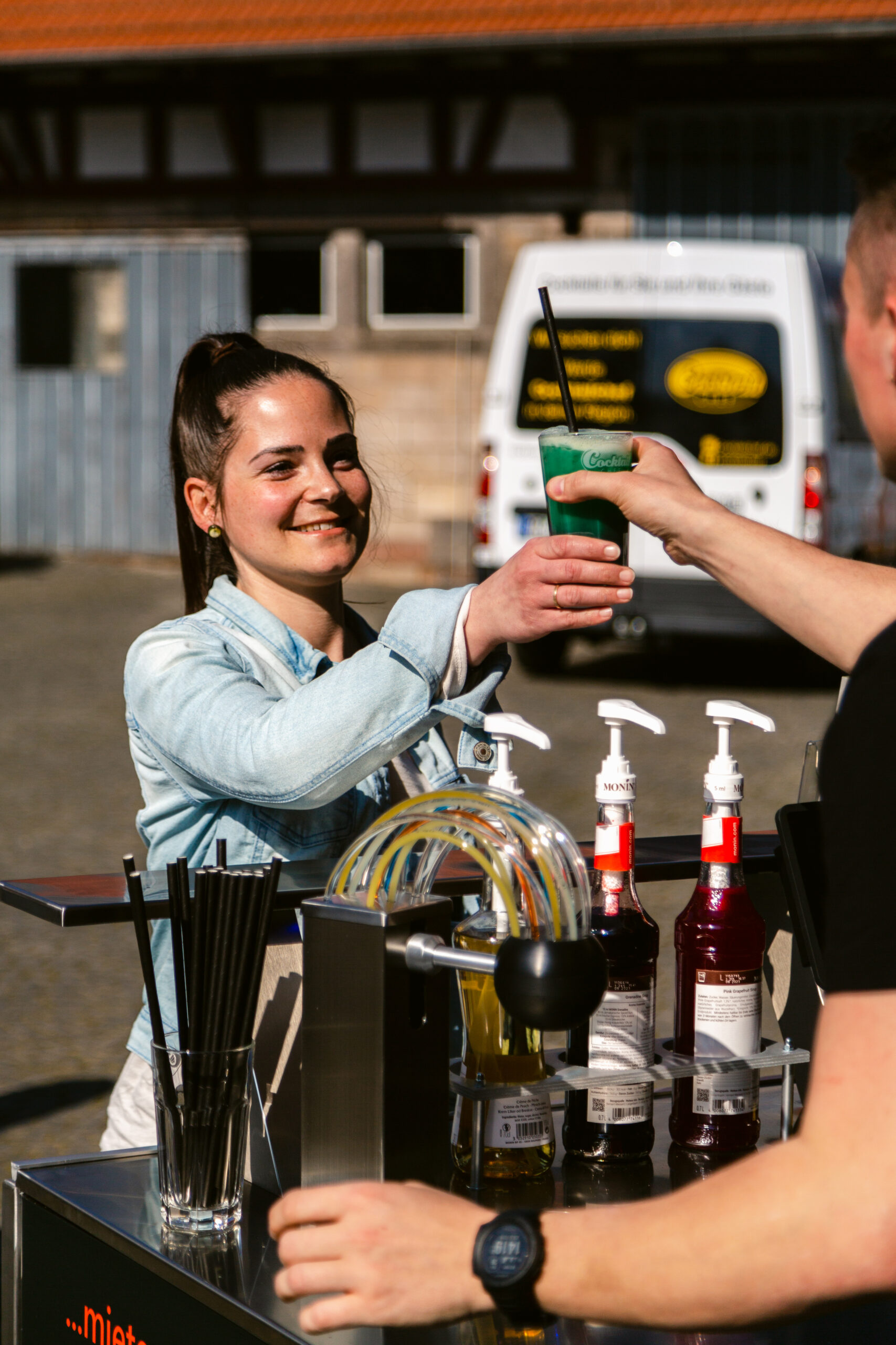 Wir liefern Dir die Cocktailanlage als komplettes Rundum-Sorglos-Paket direkt zu Deiner Veranstaltung – inklusive aller Zutaten, Gläser, Becher und Trinkhalme.